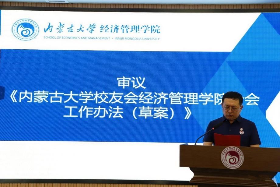 经济管理学院行政办副主任,校友分会副秘书长、办公室主任张敬德宣读了《内蒙古大学校友会经济管理学院分会工作办法(草案)》。