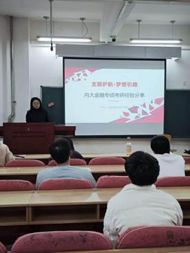 本次分享会在支部的精心组织与策划下,特邀支部成员郭雅妮同学担任主讲。郭雅妮本科毕业于四川农业大学金融学专业,两次报考内蒙古大学金融专硕,从初试317分失利,到今年以初试第一(387分)、复试第五的优异成绩成功“上岸”,积累了丰富的实战经验与备考心得。